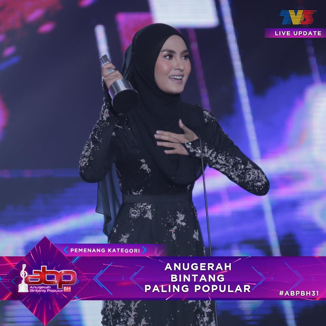Showbiz Singer Wany Hasrita Wins Most Popular Artiste Award At Abpbh 31