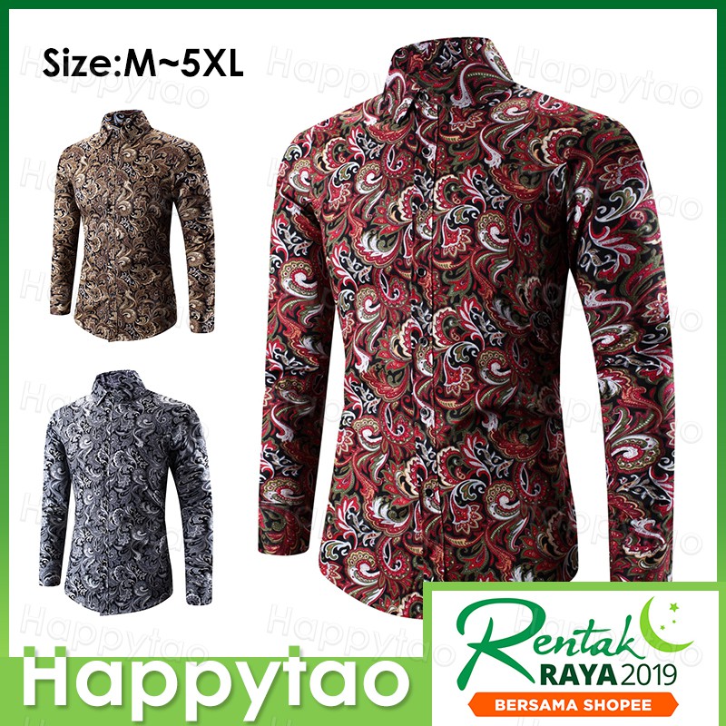 Men S Batik Shirt Kemeja Lelaki Baju Kemeja Batik Bunga Long Sleeves Big Size Shopee Singapore