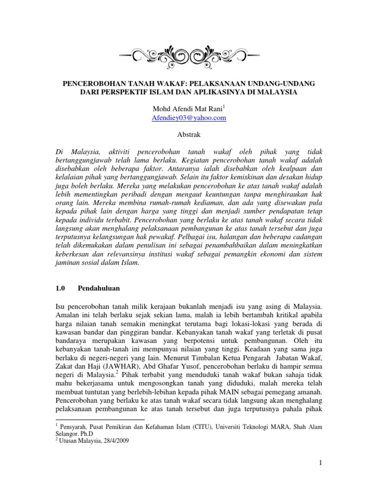 Pdf Pencerobohan Tanah Wakaf Dari Aspek Perundangan Negara