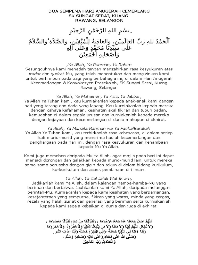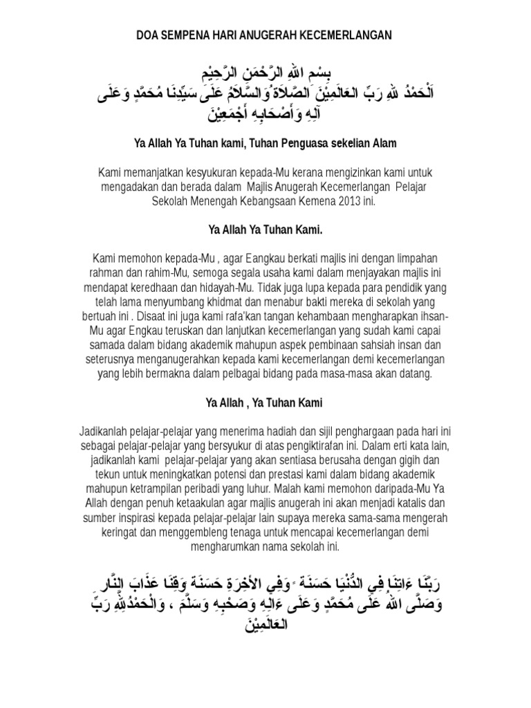 Doa Sempena Hari Anugerah Kecemerlangan 1