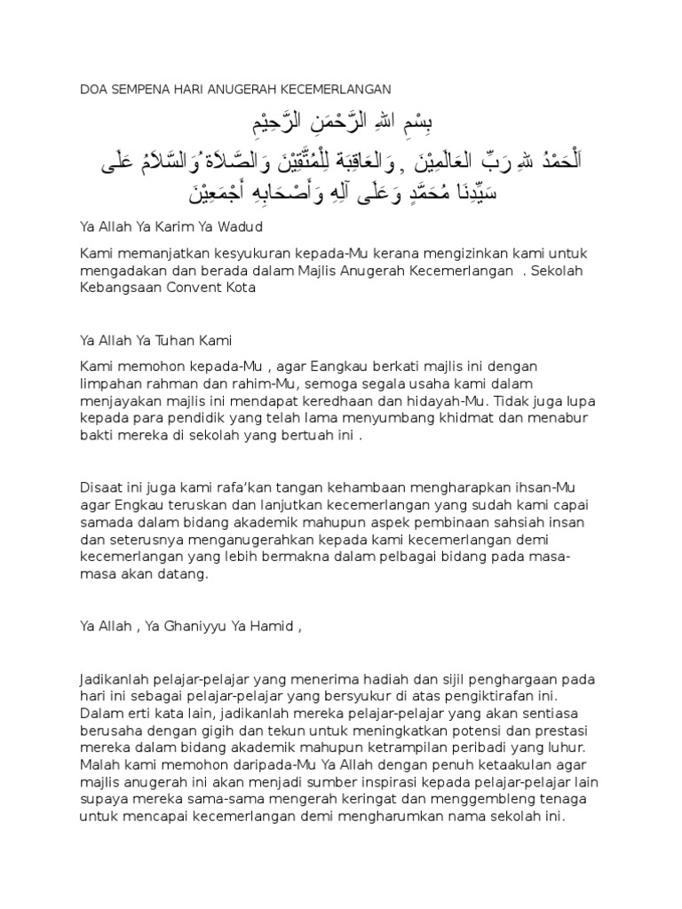 Doc Doa Sempena Hari Anugerah Kecemerlangan Mohd Rahmat Academia Edu