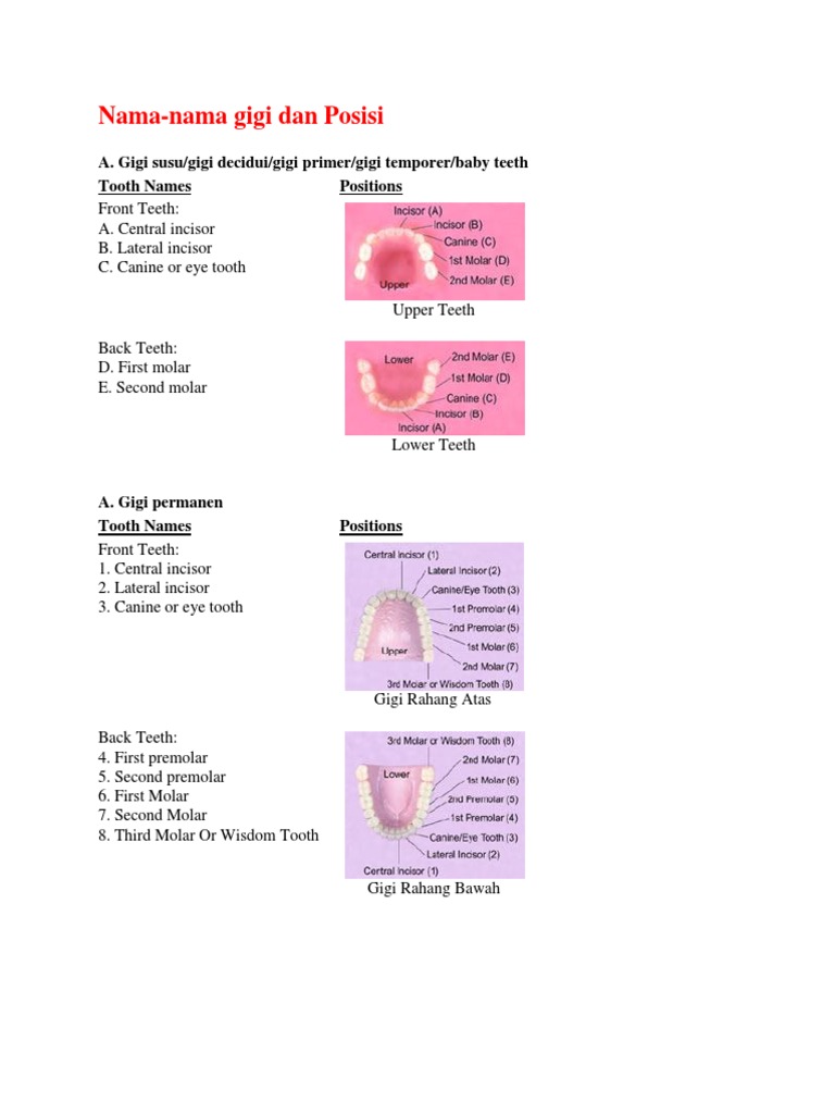 Nama Nama Gigi Tooth Human Head And Neck