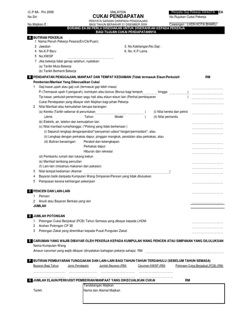 Borang Kosong Penyata Gaji Pekerja Agensi Kerajaan Ec