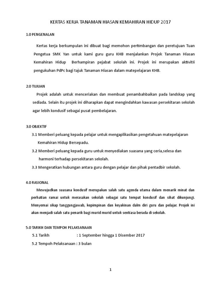 Contoh Kertas Kerja Projek Landskap Jawat Koson