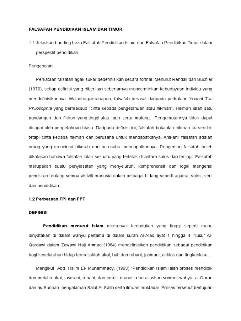 Falsafah Pendidikan Islam Dan Timur