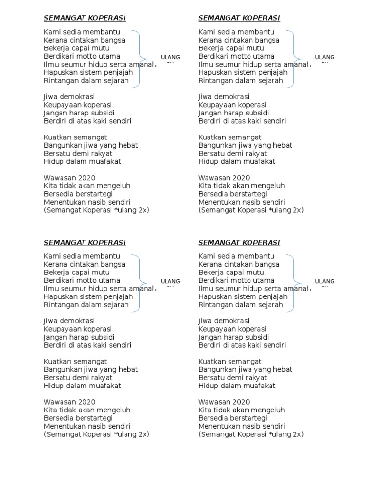 Lirik Lagu Semangat Koperasi Docx Document