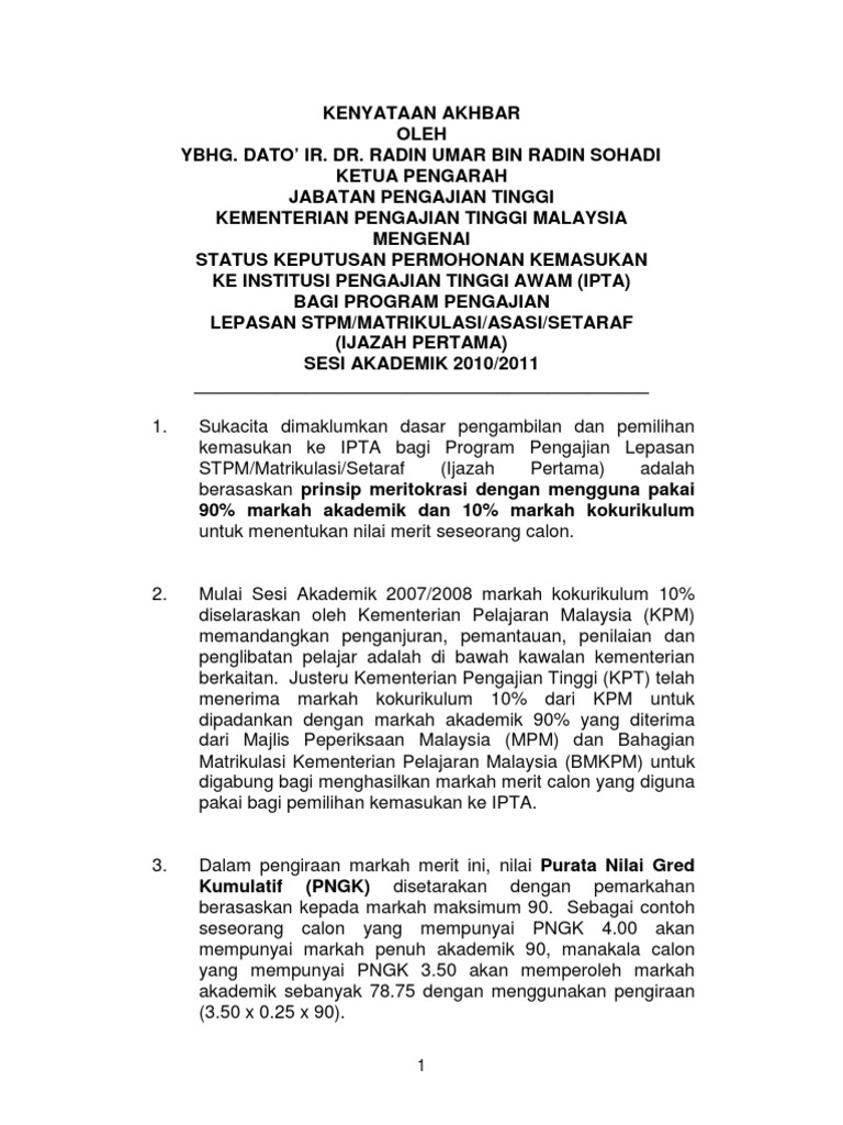 Contoh Pengiraan Merit Ke Ipta Dan Politeknik