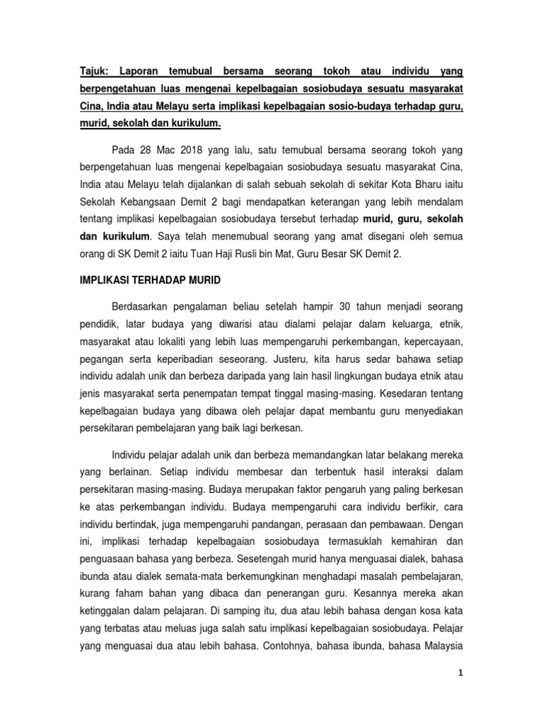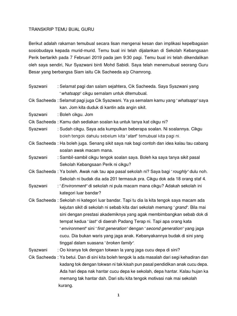 339273446 Transkrip Temu Bual Docx Transkrip Temu Bual Berikut Adalah Rakaman Temubual Secara Lisan Mengenai Fokus Temu Bual Iaitu Konsep Budaya Course Hero