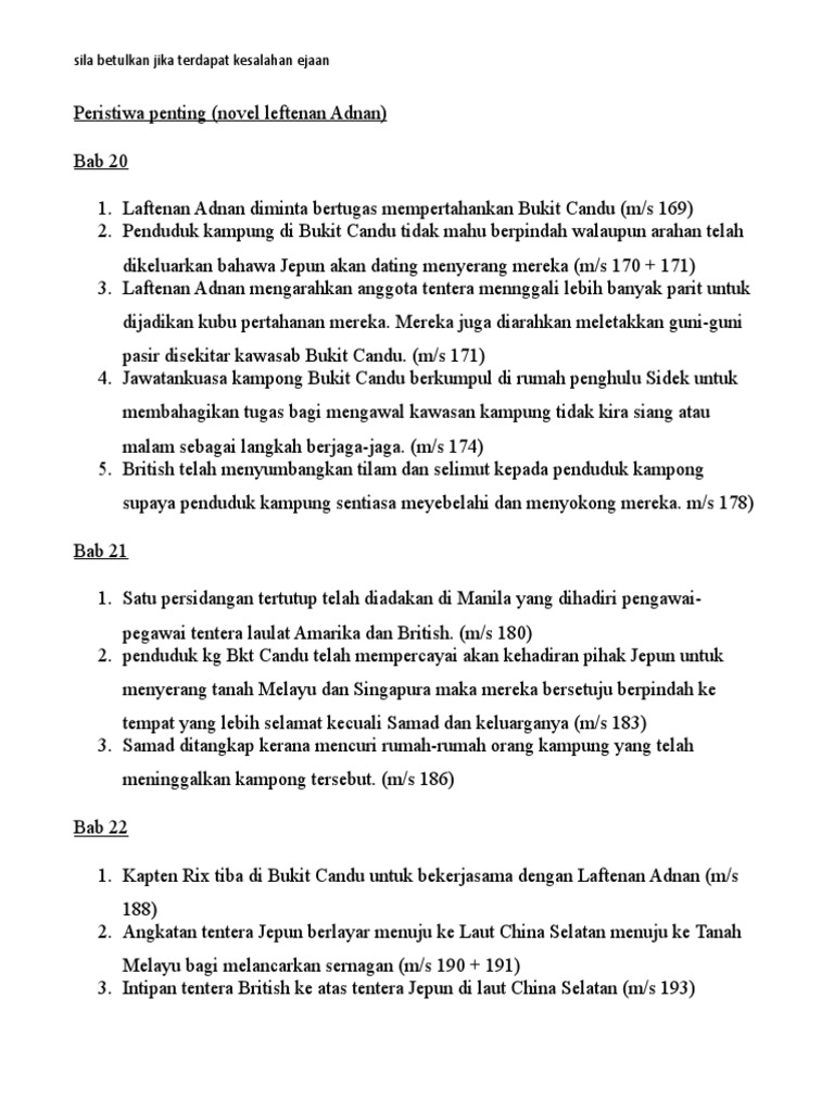 Bm Tingkatan 4 10 Peristiwa Penting Dalam Novel Leftenan Adnan必学的十个重要的故事情节 Youtube