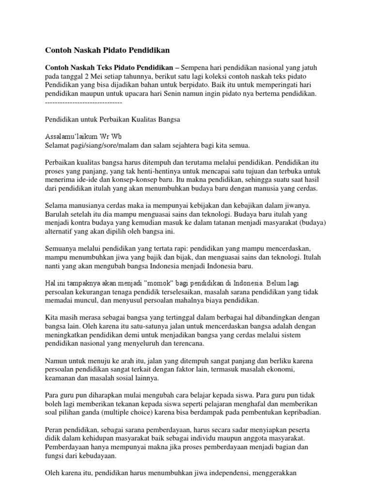 Contoh Naskah Pidato Pendidikan