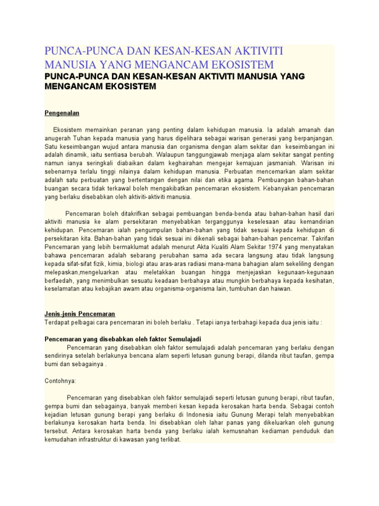 Karangan Fakta Punca Punca Berlakunya Pencemaran Alam Docx