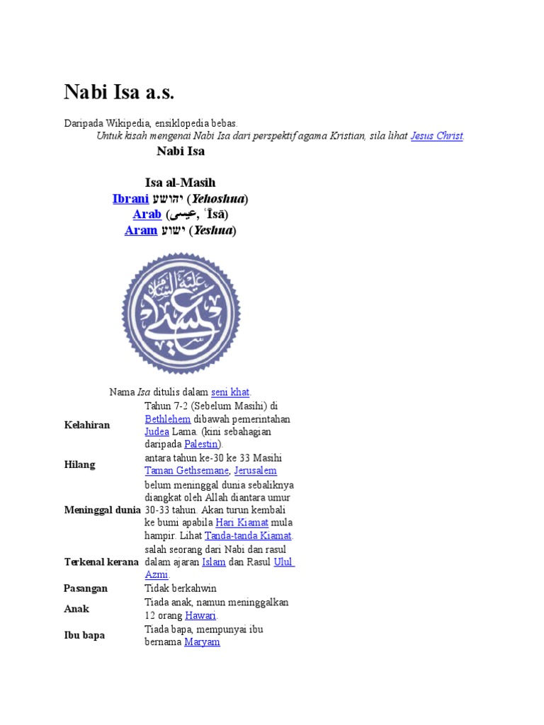 Nabi Isa A S Wikipedia Bahasa Melayu Ensiklopedia Bebas