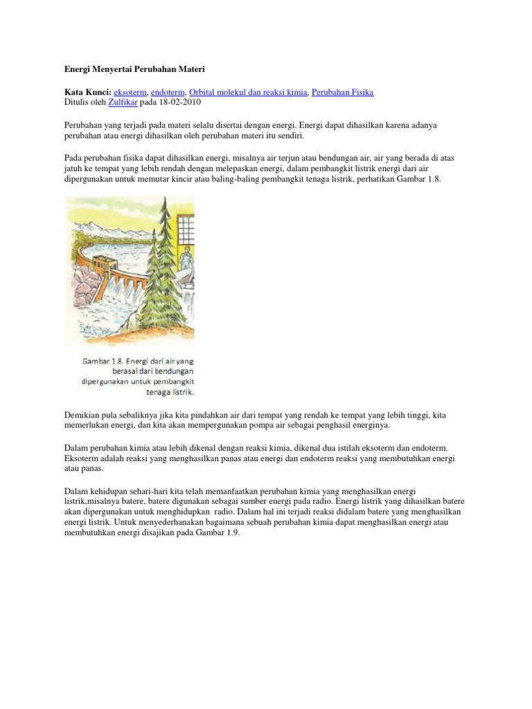 Energi Menyertai Perubahan Materi Kata Kunci Eksoterm Endoterm Orbital Molekul Dan Reaksi Kimia Perubahan Fisika