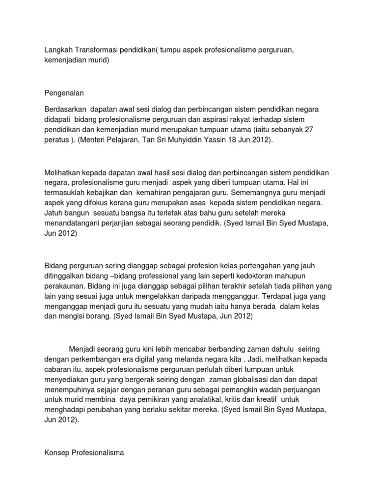 Usaha Usaha Untuk Merealisasikan Tranformasi Keguruan Sebagai Profesion Pilihan